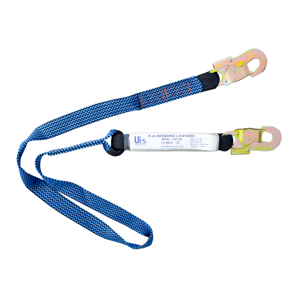 La **línea de vida UFS USP-829** está confeccionada con **banda plana de alta resistencia**, ofreciendo durabilidad y comodidad al usuario. Su **amortiguador integrado** asegura la absorción de energía en caso de caída.